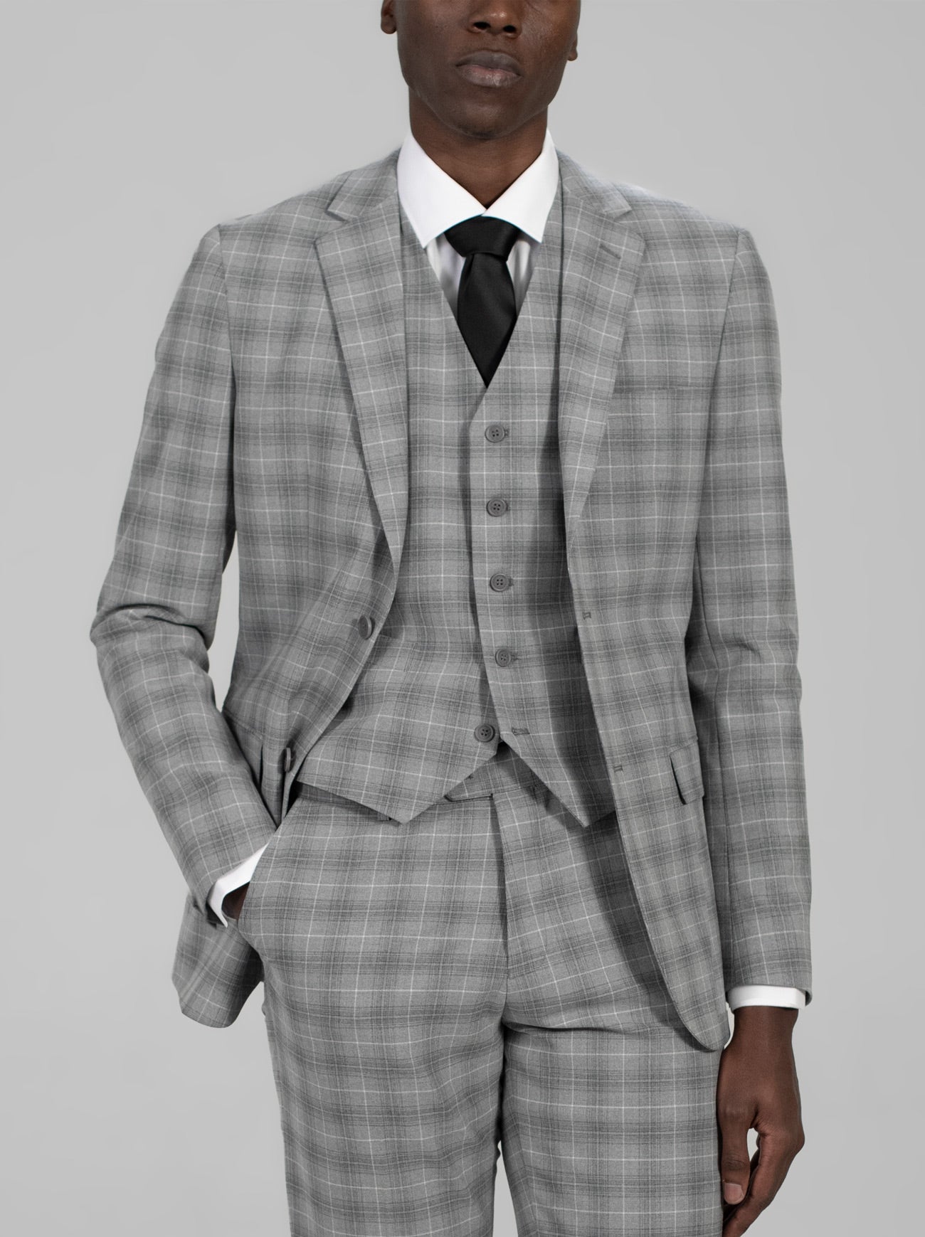 Dove Grey Windowpane Three Piece Suit