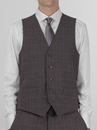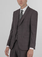 Slate Grey Windowpane Three Piece Peak Lapel Suit